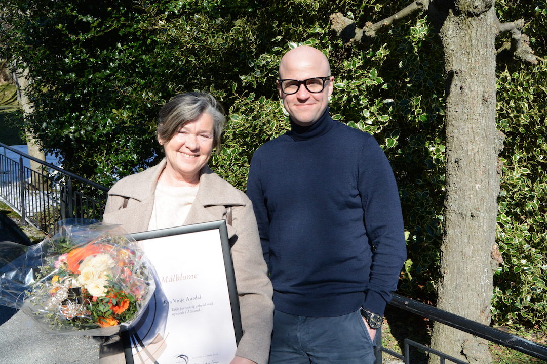 Laurdag fekk ordførar Eva Vinje Aurdal tildelt Målblome av Mållaget som takk for hennar viktige arbeid for nynorsken i Ålesund.