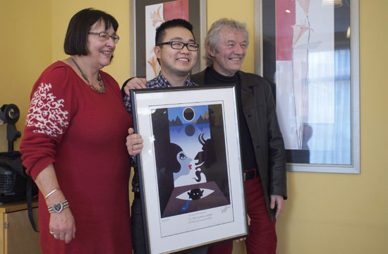 – For oss i heimfylket vart han som den heimkomne sonen. Med denne målprisen ønskjer vi han velkomen heim, sa leiar Aud Lunde i Sogn og Fjordane Mållag då ho overrekte prisen, eit bilete av Oddvar Torsheim.