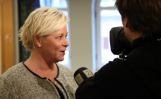– Som alle andre politiske spørsmål er desse også noko som skal diskuterast før eit eventuelt regjeringssamarbeid. Eg er glad for at Høgre har fylgt etter FrP i spørsmålet om obligatorisk sidemål.